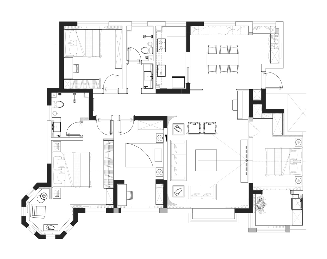 不同于客餐厅的新中式的风格,卧室想要营造的感觉是舒适自然的,褪掉一天工作的辛苦和劳累,拥有一个舒适的空间可以休息补充力量。