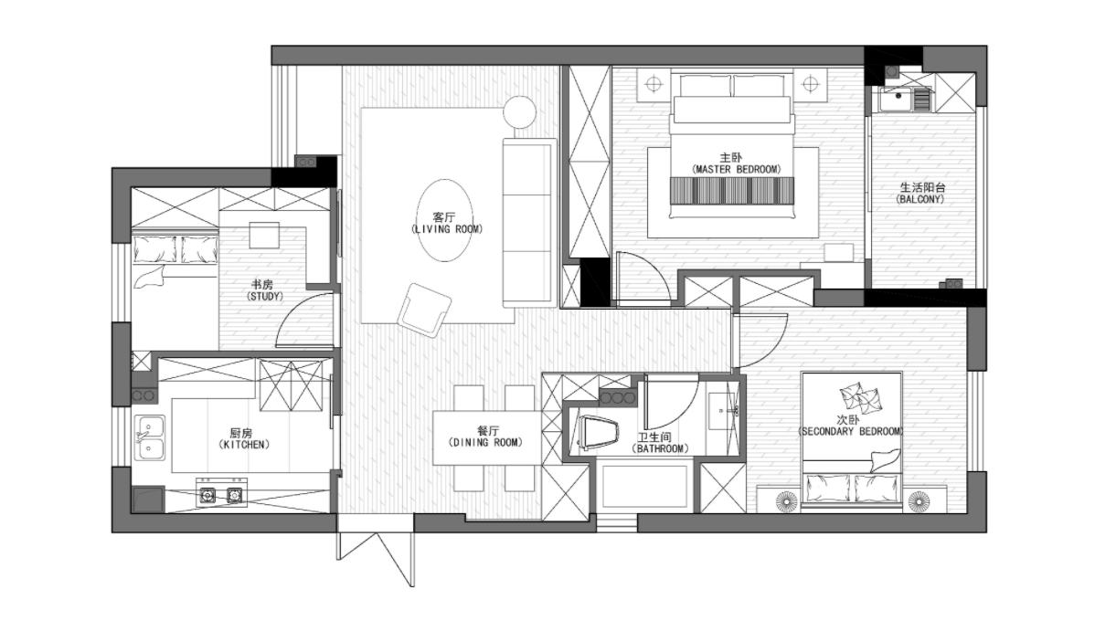 1、 全屋户型并没有做太大变动,为了满足业主今后的使用需求,以突出居住空间为主,做了一个休憩房间。