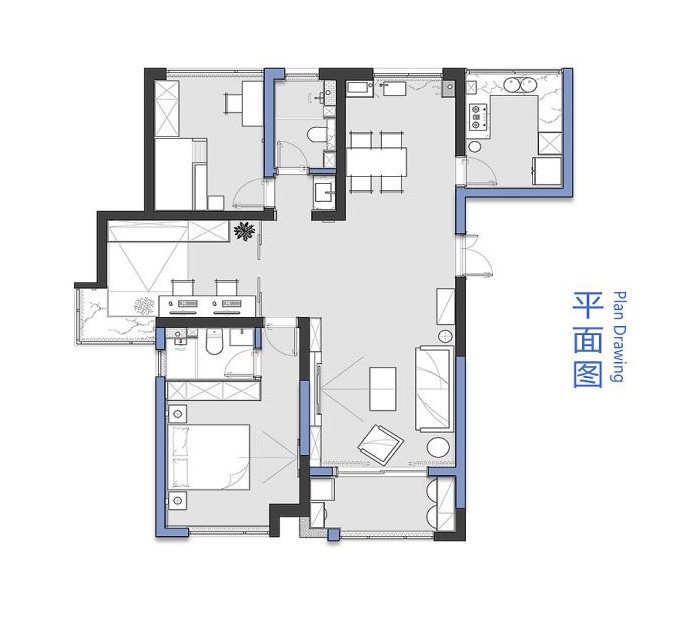那一抹蓝-杭州公馆-现代风格设计-装修效果图